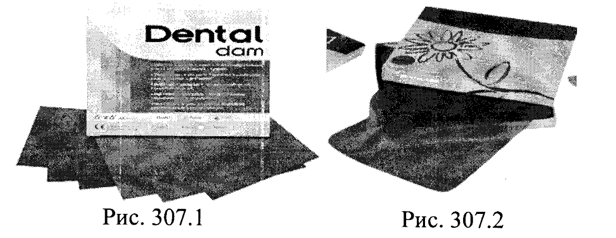 307.1. Коффердам (рис. 307.1), состоящий из тонких листов вулканизированной непористой резины, в форме квадрата (152 мм х 152 мм) с прямыми углами представлен в различных цветах и с ароматом мяты. Изделие используется в стоматологии для изоляции одного или нескольких зубов во время медицинского вмешательства. Данный товар в соответствии с ОПИ ТН ВЭД 1 (Примечание 9 к группе 40 ТН ВЭД ЕАЭС) и 6 классифицируется в субпозиции 4008 21 ТН ВЭД ЕАЭС.